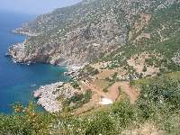 Yayladağ ilçesinin en uç noktasında bulunan koy, Karamağara olarak bilinmektedir.