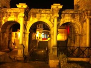 Yani: Hadrian kapısı, yukarıda da söylediğim gibi, şehrin modern ve eski kesimleri arasında bir geçiş yeri gibi olmuş. Özellikle: akşam olduğunda, kapı gayet güzel ışıklandırılıyor. Tarih meraklılarının mutlaka görmelerini öneririm.