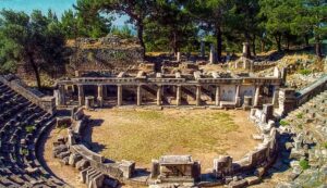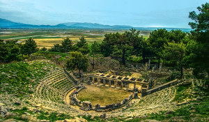MÖ 350 yılında Helenistik dönemde yapılmıştır. Roma döneminde bazı değişikliklere uğramıştır. Yaratılan doğal eğim sayesinde akustiği oldukça güçlüdür.