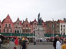 Meydanın çevresi, şirin kafelerle çevrilidir. Meydanın ortasında ise, 14’ncü yüzyılda; Fransa’ya karşı yapılan savaşta ölen, Flaman kahramanlar Yan Redil ve Peter De Caning’in heykelleri var. Bu şahıslar, Altın Spurs savaşında, büyük kahramanlık göstermişlerdir.