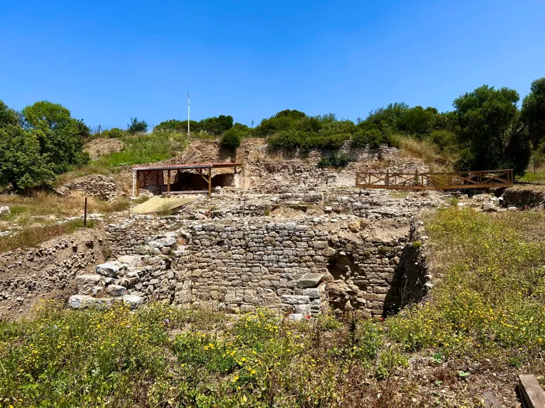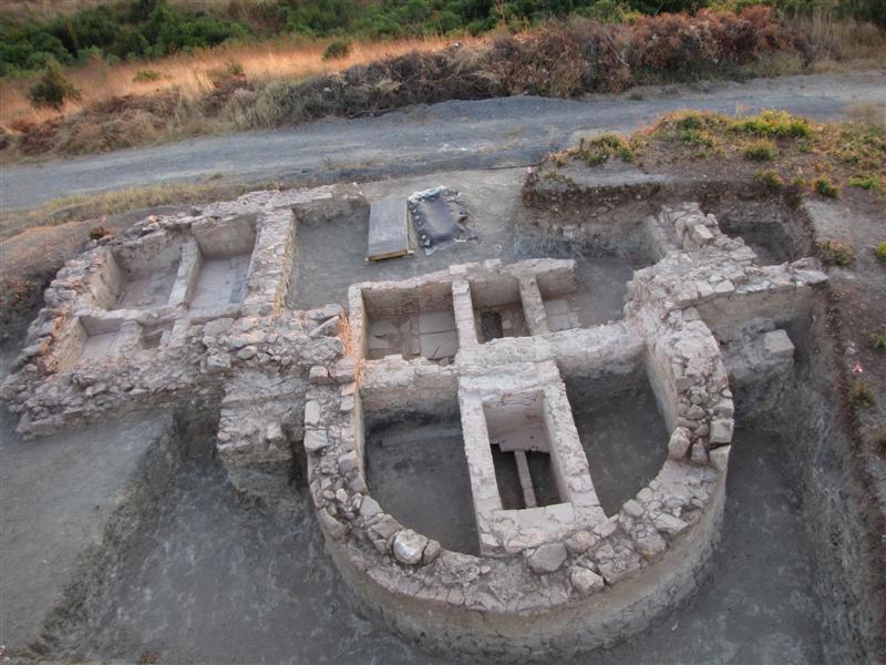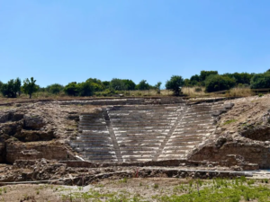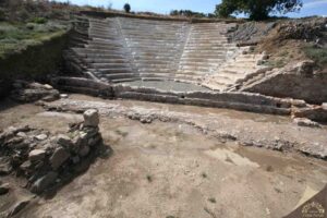 Tiyatroda ilk çalışmalar: orkestrada bir bölümü kaldırılan geç dönem duvarlarının oturduğu tabakada yapılmıştır.