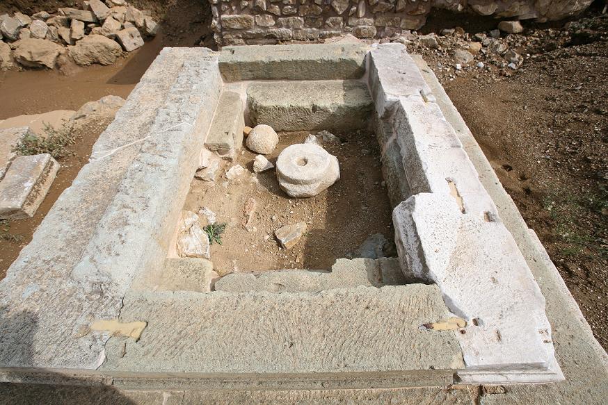 Güney Nekropolünde bir taş mezarda bulunan iskeletin dizleri hizasında, bir yanı üzerine yatmış durumda bulunmuştur. Mezar armağanı olarak konulduğu düşünülüyor.