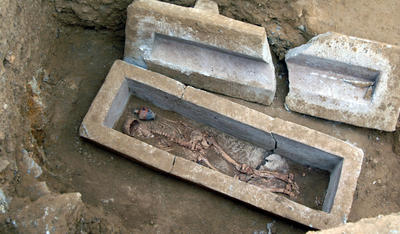 Parion antik kentinde Tiyatrodan çıkan bir lahit