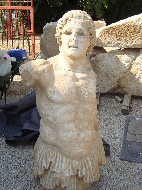 1.30 metre yüksekliğindeki heykelin baş kısmı kırık olarak ele geçmiş ve onarılmıştır.