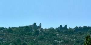 Kilisenin güneyinde bir şatoyu andırır kare şeklindeki yapı kalıntısının sütunları durmaktadır. Burnun doğusunda eskilerin Didime dedikleri, iki küçük adada bazı inşaat kalıntıları vardır. Sahilde büyük bir han ile 50 hanesi Hıristiyanlara ait, Karataş köyü bulunur.”