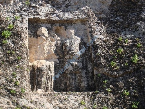 Nekropol alanının kuzeyinde, sarp bir kayalığın üzerine oyulmuştur.