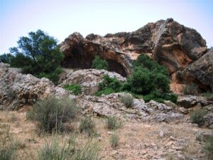 Buraya “Keçiler Mağarası” da denilmektedir. Mağara yol üstünde bulunan Perre antik kentine, 3 km uzaklıktadır. Mağaradaki resimler ilk olarak 1968 yılında yöreye Pirun kaya sığınaklarındaki resimleri görmek için giden Anati tarafından tespit edilmiştir. Daha sonra, mağaradaki resimler 1970 yılında araştırılmıştır. Anati, Keçiler mağarasında kazıma tekniğiyle yapılmış en az 45 figür bulunduğunu belirtmektedir.