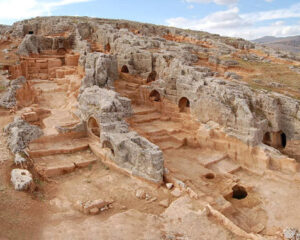 Burada: ana kaya oyularak oda şeklinde yapılan mekanlar bulunur. Ayrıca yine kayalar oyularak yapılan ve ölülerin içine konulduğu lahitler vardır. Bu lahit mezarlar, aile bireylerinin sayısına göre yapılmıştır.