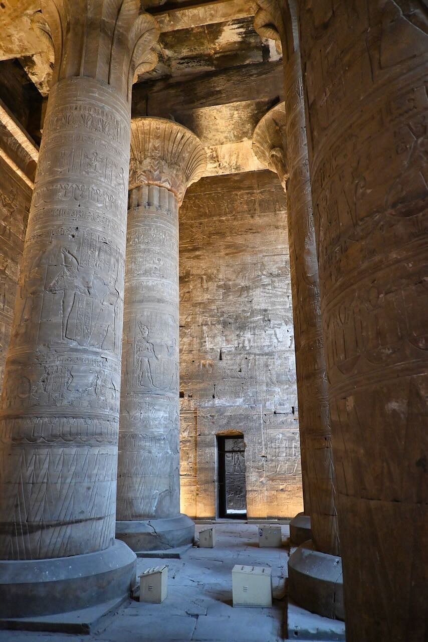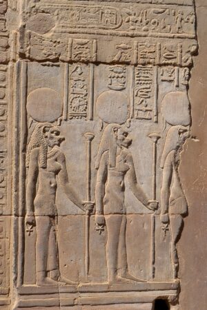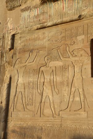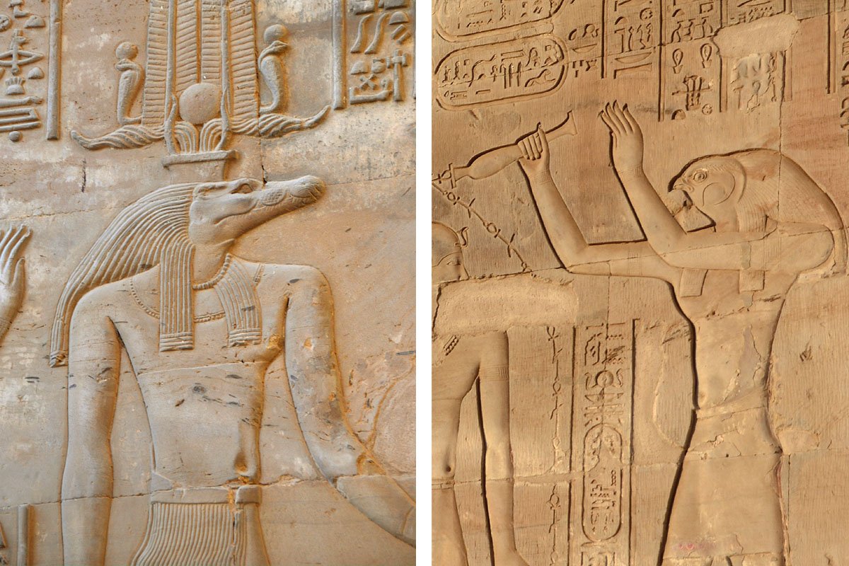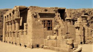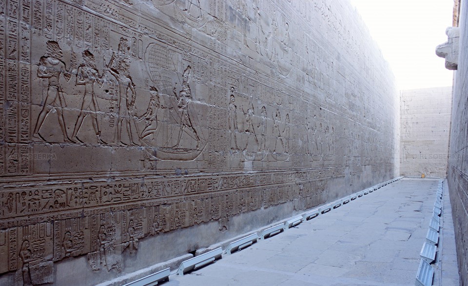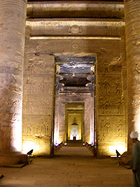 Edfu’nun efendisi Tanrı Horus’a adanmıştır. Denderalı Horus ve Hathor’a adanmış en büyük tapınaktır. Tanrı Horus’a güneş diski ve şahin biçiminde saygı gösterilmiştir.