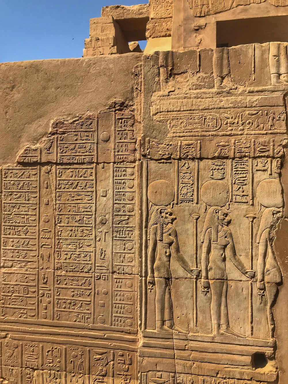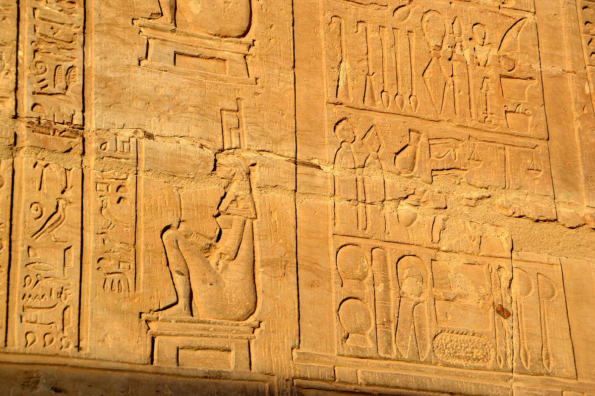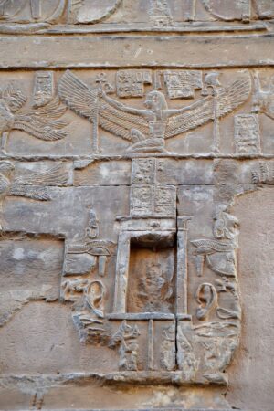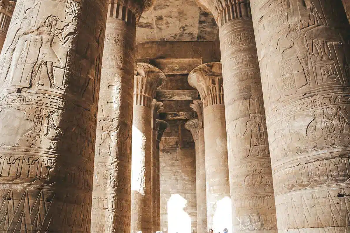 Edfu’nun efendisi Tanrı Horus’a adanmıştır. Denderalı Horus ve Hathor’a adanmış en büyük tapınaktır. Tanrı Horus’a güneş diski ve şahin biçiminde saygı gösterilmiştir.