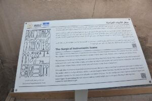Oyma süslemeler, kralın ölümden sonraki yaşamını, onu güneş tanrısı Ra ve Osiris ile ilişkilendiren sembolizm aracılığıyla anlatır.