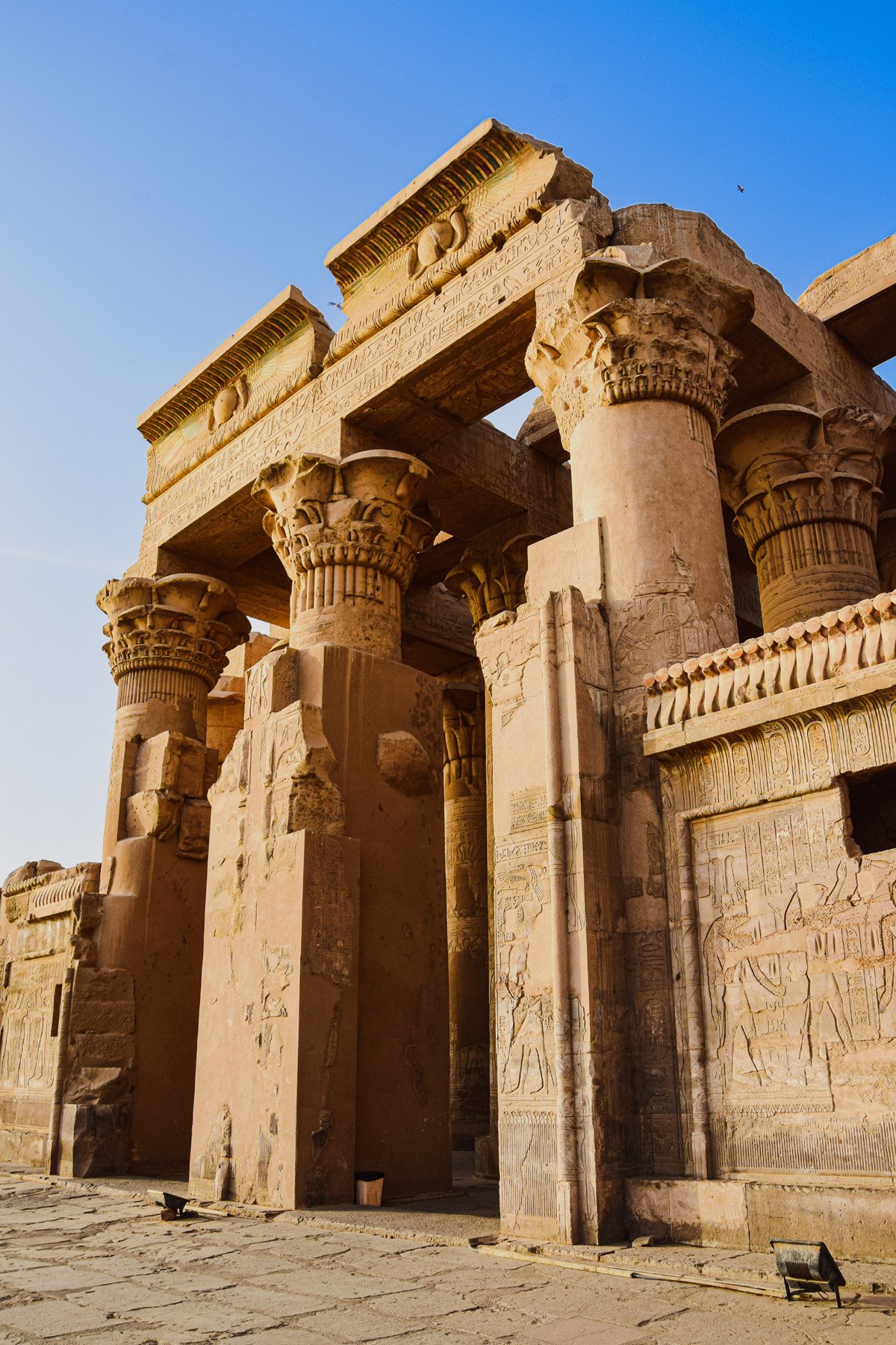 Pilon güneye bakar ve tapınağın en etkileyici özelliklerinden biridir.