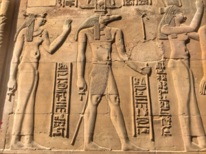 Horus ve Hathor un oğlu Harbomptus u onurlandırmaktadır.