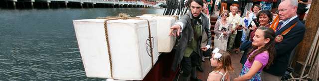 Burada: çay üzerine konulan vergileri protesto etmek isteyen Bostonluların baskınına uğrayan, 3 İngiliz gemisinden birinin, gerçek ölçülerde bir benzeri bulunmaktadır.