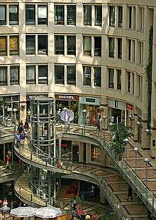 Binaya giriş için: 4 ana kapı ve ayrıca otopark bağlantısı bulunuyor. Bu katlar için: 8 insan, 2 yük asansörü ve 4 yürüyen merdiven var.