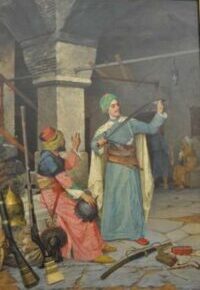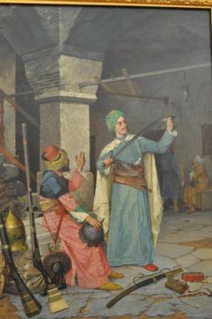Daha sonra: merdivenlerden üst kata çıkıyoruz. Önce: 3 numaralı oda ve burada ünlü Türk ressamlarından Fikret Mualla’nın sulu boya eserlerini görebiliyoruz. Sonra: yandaki 2 numaralı oda ki burada da Türk resim sanatının öncülerinin eserleri ve özellikle Osman Hamdi Bey’in Silah Taciri isimli tablosunu görebiliyorsunuz.