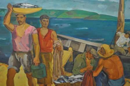 Evet: biz, görevlinin önerisine ayak uydurarak: sağdan itibaren müzeyi gezmeyi başlıyoruz. Sağ yandaki ilk galeri, daha çok: 20’nci yüzyıl ressamlarının eserlerine ayrılmış. Duvarlarda yağlı boya tablolar, ortada güzel bir oturma düzeni ve birkaç heykel bulunuyor. Salon o kadar güzel aydınlatılmış ki pırıl pırıl görülüyor.