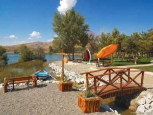 Göl kıyısında: 2 ahşap, 2 plastik duba sistemiyle yapılmış, 4 iskele bulunuyor.