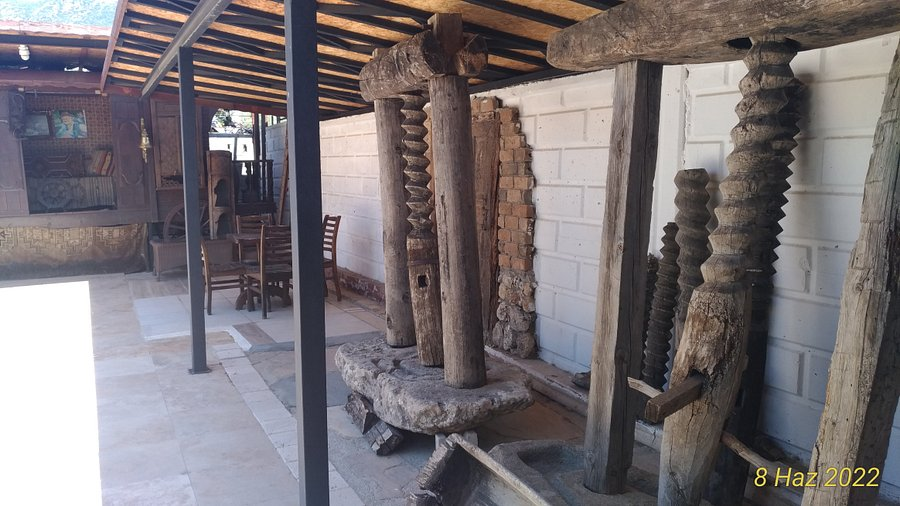Burada: küçük bir havuz, 4 tane sütun, sundurma çatı ve su var. Ayrıca: zeminde, kenarda bir kuyu görülüyor. Kuyunun içine: antik dönemde, şaraplar indiriliyormuş.