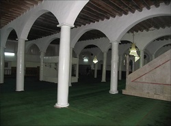Synnada’nın kale kapılarından kalma 6 mermer direk üzerine, tuğla ile örülmüş olan minaresi toprak damlı ve kagirdir.
