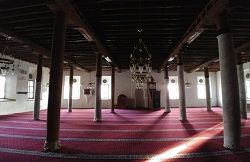 Caminin içindeki kıbleye dikey, her sırada dörder tane olmak üzere dört sıra sütun bulunmaktadır.