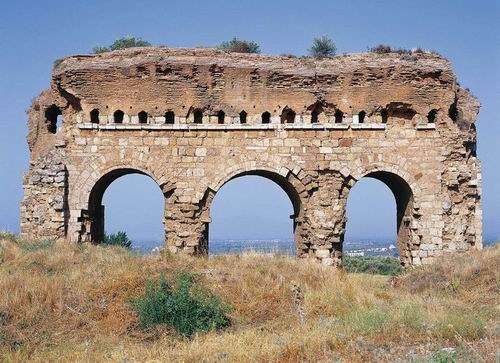 Limanın arkasında uzanan kayalık arazide, göl kenarındaki doğal bir burun üzerindedir. İki sütunlu Helenistik dönem yapısıdır. Kentin en iyi korunarak günümüze ulaşmış yapısıdır. ehir, MÖ 287 yılında Romalı General Mizimahos tarafından fetih edilir.