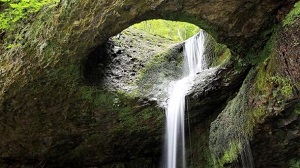 Kayanın içinden akan su ile oluşan bir şelaledir.