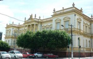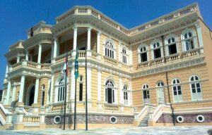 Bu görkemli tiyatro binası: kauçuk zengini Avrupalı şirketler tarafından oyun ve operaların sunumu için 1896 yılında açılmıştır. Neoklasik cephe pembe boyalıdırve kubbesinde: Brezilya bayrağının renklerini sembolize eden ve 36.000 seramikle yapılan bölüm ilgi çeker.