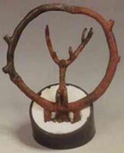 İkinci figür: bu, yöre halkı tarafından “su içen yılan” olarak da biliniyor. Bu figür: bir heykel görünümünde. Gözenekli taştan yapılmış olan parça: kupa şeklindedir. Gövdesine bir yılan sarılıyor ve üst kısmında uzantı yaparak sonuçlanıyor.