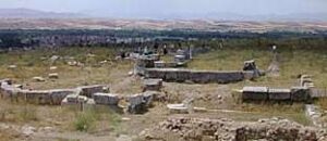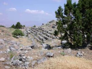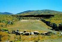 Sultan Dağlarının eteklerinde, akropolün batısındadır. Yapı: 190 x 30 metre ölçülerinde ve at nalı şeklindedir. Helenistik dönemde, MS.2 yüzyılda inşa edilmiştir.