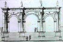 Anıtsal giriş kapısına: Tiberius alanından, 12 basamaklı bir merdivenle çıkılıyor. Geçit tonozunun ortadaki alanı: 4 adet ayak ve korinth başlıklı, 4 sütun üzerinde durmaktadır.