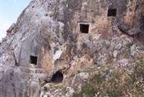 İlçe merkezinin batısında, 25 km. uzaklıktadır. Hoyran gölüne doğrudan dik inen kayalıklar üzerindedir. 3 mezar var. Soylulara özgü oldukları belirlenmiş. Ancak, bir tanesi daha özel. 30 metre yukarıda, göle ve günbatımına doğru bakıyor, yalın olarak diğer ikisinden hemen ayırt ediliyor.