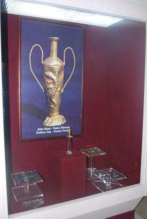14.Vitrin: Roma döneminin küçük buluntuları, bronz ve cam süs eşyaları, burada sergileniyor. Buradaki bir kupa ya özellikle dikkatinizi çekmek istiyorum.