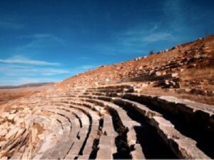 Tiyatro: yaklaşık 5 bin kişi kapasitelidir. Sahne kısmı, tamamen yok olmuştur. Günümüze kalan, mevcut kalıntıları ise: muhtemelen MS.4.yüzyıla tarihlenmektedir.