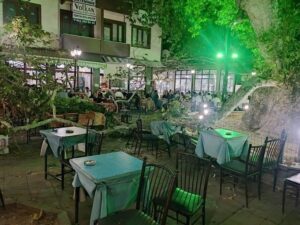 Türklerin gelip yerleştiğinde merkezde bulunan Çınaraltı, tam ilçenin merkezinde bulunuyor. Çevresinde toplanmış kahvehanelerden oluşur. Ağacın çevresinde oluşturulan tarihsel meydan, gerçekten mutlaka mola vermenizi önereceğim güzel bir ortam.