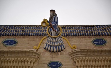 Avluda büyük bir yuvarlak havuz vardır. Cephe üstünde kanatlı bir figür vardır. Bu figür “Zerdüştlük yüce tanrısının görsel temsili resmidir.”