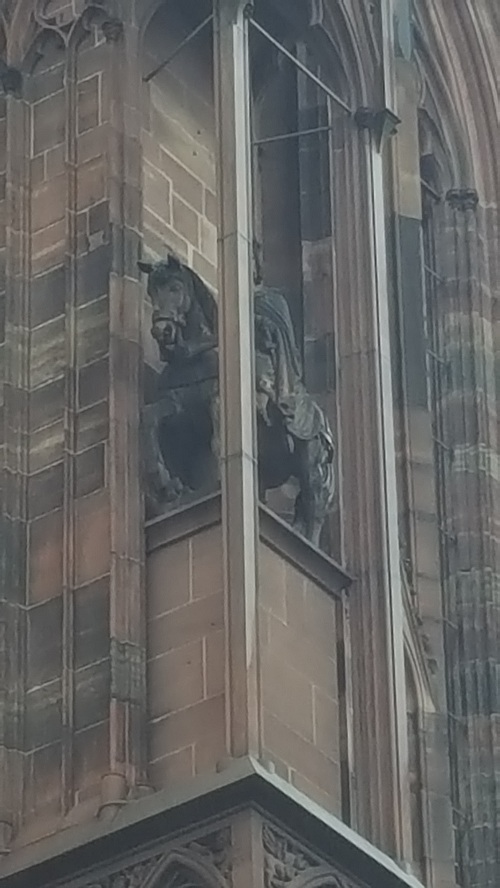 Protestanlığın egemen olduğu dönemde, Strazburg şehrine Roma Katolikliğinin geri dönüşünü göstermek amacıyla yapılmıştır. Rahiplerin daireleri, kuzeye doğru yani katedrale doğru dönüktü.