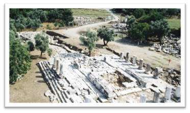 Buraya giderseniz görebilecekleriniz şunlar: kuzeydoğu köşesinde, büyük kesme taşlardan yapılmış kale yıkıntıları, kuzey bölümde, büyük kaya bloklardan yapılan ana giriş kapısı, bu giriş kapısının önünde, kutsal yolun kenarında oda mezarlar, kentin tam ortasında iyi durumda günümüze ulaşan: Bouleuterion yani küçük tiyatro, batıda: gymnasion.