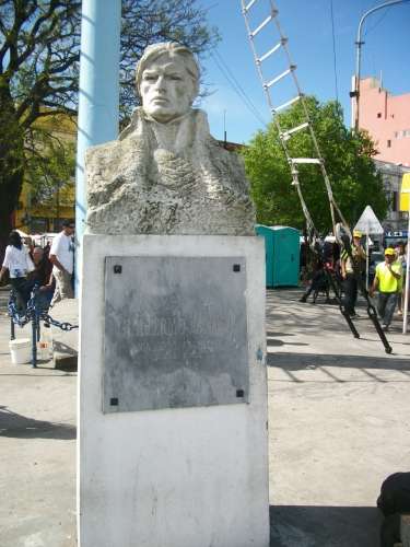 Heykelin kaidesi bronzdan yapılmış olmasına karşın, heykel alüminyumdan yapılmıştır.