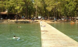 Çevresi bölgenin karakteristik ağacı olan “Kızılçam” ile kaplıdır.