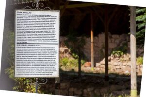 Evet, bu yazıtı okuduktan sonra, mezarda defineciler tarafından yapılan kaçak kazılar sonucu verilen hasarı görüyorsunuz, defineciler mezarın sadece taban kısmını kazmakla kalmamış, kapısının iç tarafında bulunan bazı taşları da almışlar ve duvarına zarar vermişlerdir. Şaşırmamak elde değil.
