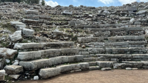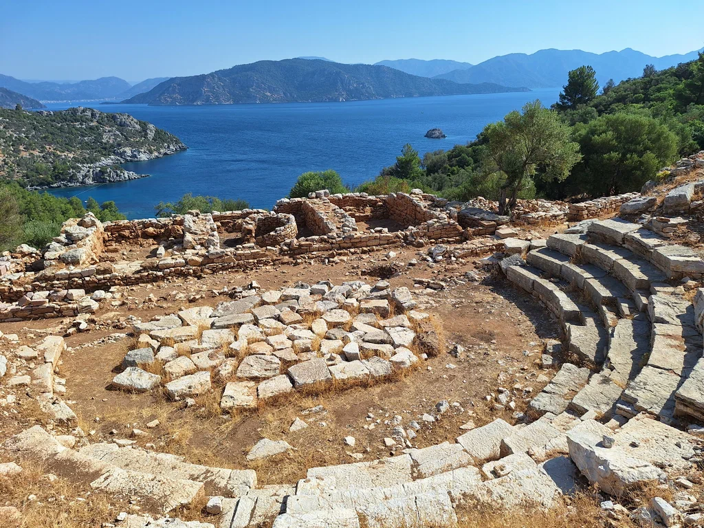 Tapınak kalıntılarının bulunduğu tepeye ulaştığınızda, antik dönem insanlarının burayı neden seçtiğini çok iyi anlayacaksınız. Rüzgarın eksik olmadığı bu yüksek noktada, masmavi deniz ile yeşil yamaçların birleştiği o meşhur Amos Manzarası en iyi buradan izlenir.