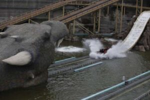 Sulu eğlence sevenlerin tercihi, 15 metreden aşağıya beklenmedik bir anda düşüş ve sonucunda biraz ıslanıyorsunuz, ama adrenalin doruklarda. Evet, bir tekneye biniyorsunuz ve su dolu bir kanalda ilerliyorsunuz. Tekneler 20 kişiliktir. Yolculuk sırasında, 45 derecelik bir eğimle: 10 ve 15 metrelik iki ayrı bölümden aşağıya kayıyorsunuz ve ıslananlar için çıkışta özel kuruma bölümleri bulunuyor. Burada kurumadan çıkarsanız ve hatta “maceraperest” e binerseniz, ıslak ıslak rüzgarın çarpmasına tahammül etmeniz gerekir.