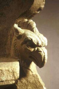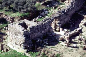 Tapınak kalıntısına ait buluntular: üzerinde rahiplerin isimleri yazılı sütun parçaları, domuz avı sahnesini betimleyen taş kirişler ve bazı mimari parçalar var.