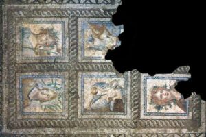 Bu mozaik pano üzerinde işlenen konu: tiyatro tanrısı Dıonysos ve karısı Ariadne ve ayrıca çeşitli mitolojik kahramanlar görülüyor. Bu nedenle, bu salonun, tiyatro gösterilerinin yapıldığı yere ait bir resepsiyon salonu olduğu düşünülüyor.