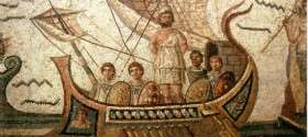 Odysseus konu edilmektedir. Odysseus: Kalypso adasına doğru giderken, Seirenler’in şarkılarından etkilenmemek için, gemisinin direğine bağlanmış olarak tasvir edilmiştir. Odysseus’un adamları ise, kulakları tıkalı olarak kürek çekmektedirler.
