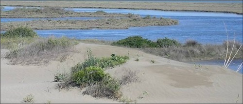 Tatlı suyun, kumullardan göle sızdığı bölümlerde, sazlıklar vardır.