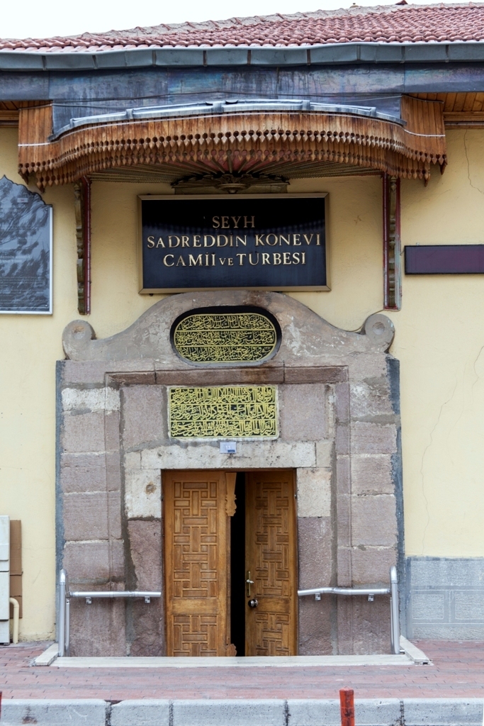 Giriş kapısındaki kitabede adı geçen Sadrettin Konevi aslen Malatyalı olup, Konya’ya yerleşmiş, zamanının tanınmış bilginlerindendir. Muhyiddin İbni Arabi’den tahsil ve terbiye görmüş, Konya’daki hanekahında hadis ilimleri okutmuştur. Mevlana’ya derin bir sevgi ile bağlanmıştır.