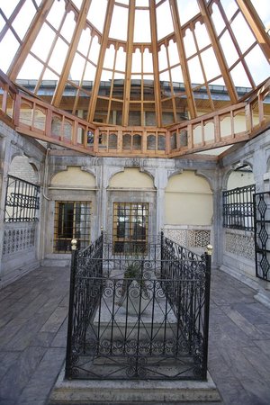 Mahfile çıkan merdivenin altında, etrafı ahşap kafesle çevrilmiş olan 3 sanduka dikkat çeker. Sandukaların Sadreddin Konevi’nin torunlarına ait olduğu bilinmektedir.
