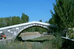 Köprünün dönemin Roma İmparatoru tarafından, büyük blok kesme taştan yapıldığı iki kaya üzerine oturtulmuş tek kemerli köprü olduğu biliniyor.